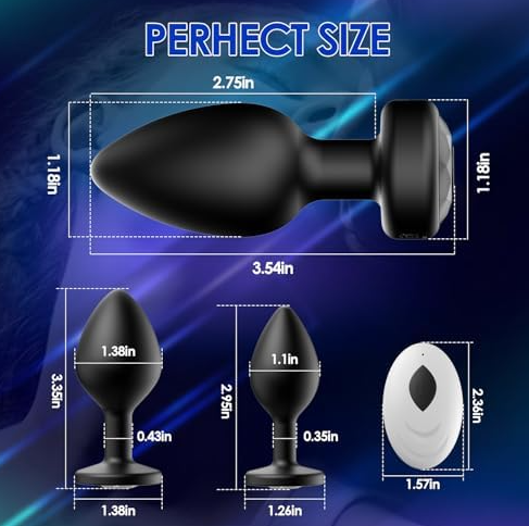 - 1PCS remote control vibrating butt plug, other 2PCS silicone butt plugs (Without remote control and vibration function),This anal toy combines a prostate massager, anal vibrators in one. This prostate massagers quickly finds and hits your P-spot, the perineum outside the corrugated bottom target to boost your arousal, helps you maintain rock solid excited, all together brings you and your partner to excited and enjoy multiple spice!